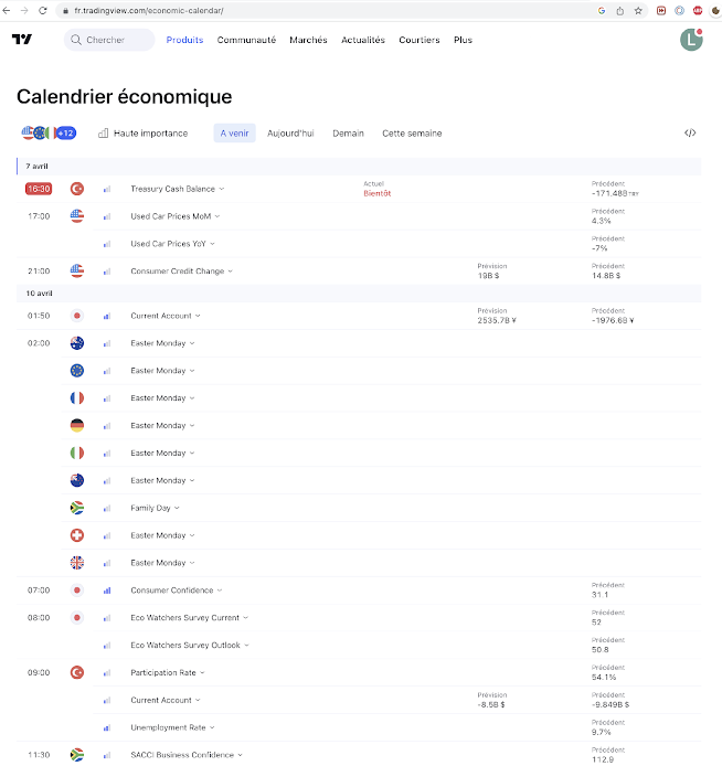 Affichage n°2 intégré directement dans le graphique pour surveiller les événements pouvant influencer le marché.
